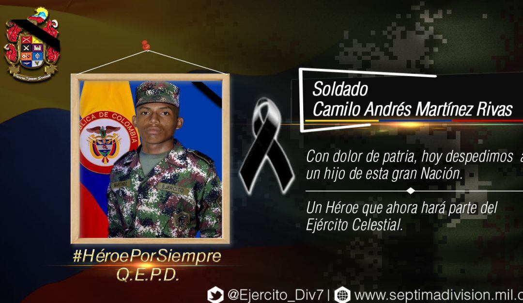 La Séptima División del ejército informó mediante un comunicado oficial que un soldado murió y otro quedó con graves heridas en zona rural del municipio de Tarazá en el bajo Cauca.
