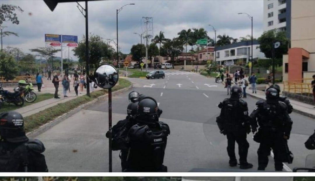 El comandante de la Policía Metropolitana de Pereira, coronel Juan Carlos Morales, relató que, inmediatamente, los uniformados reaccionaron para evitar alteraciones al orden público y tomaron algunas medidas como desviar el flujo vehicular por otra zona. Además, enviaron un grupos del Esmad, los cuales tuvieron que enfrentarse a la fuerza con los encapuchados.