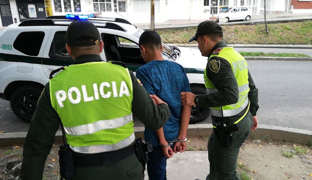 El sujeto aprehendido fue identificado como Yair Herrán Castañeda, a quien dejaron a disposición de la Fiscalía por los punibles de hurto agravado y porte ilegal de armas de fuego.