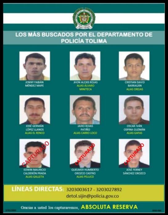Cayó uno de los más buscados en Tolima