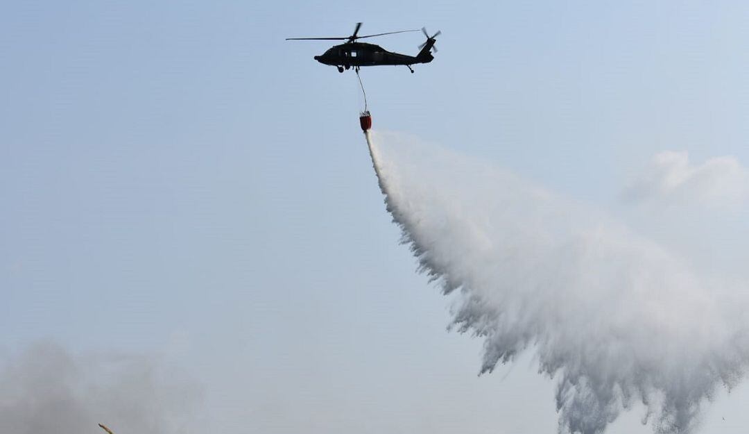 Los más 65 mil galones de agua que han sido arrojados desde un helicóptero de la FAC no han sido suficientes para extinguir las llamas.