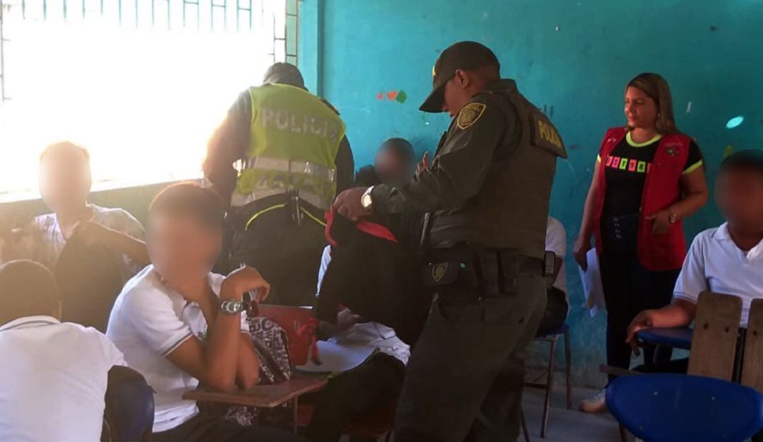 El personal de Infancia y Adolescencia, al igual que los uniformados que conforman el área de Prevención y Educación Ciudadana, se han tomado tres instituciones educativas, aplicando requisas que garantizan la convivencia y seguridad de los menores de edad, en los barrios Nuevo Bosque, Olaya Herrera y el municipio de Santa Rosa de Lima.