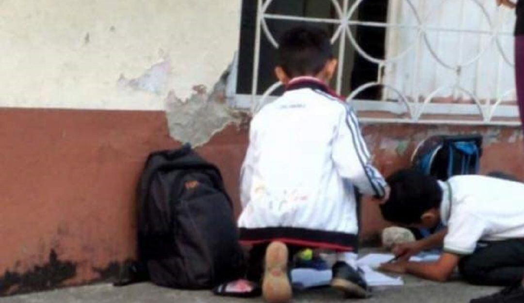 Niños toman clase en la calle