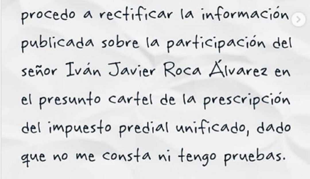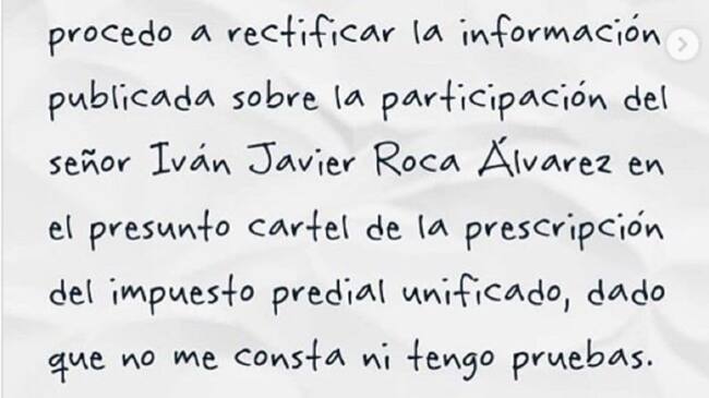 “No me consta ni tengo pruebas sobre la participación del señor Iván Javier Roca Álvarez , en el presunto cartel de la prescripción del impuesto Predial Unificado”, escribió el Alcalde William Dau, en sus redes sociales oficiales.