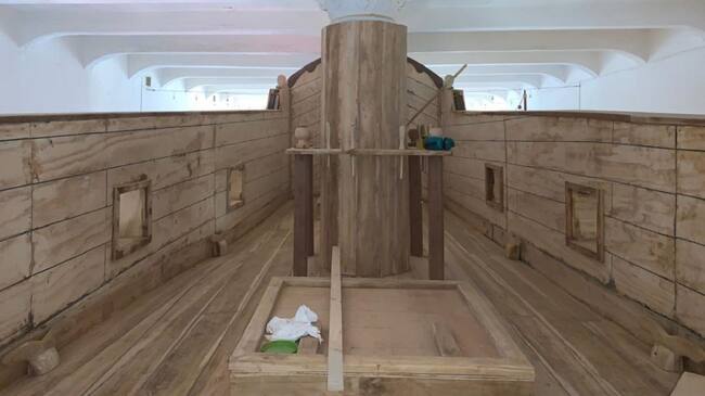 Detrás de la popa estará una maqueta con la batalla en la que naufragó el galeón, un panel informativo sobre la tragedia y un video explicativo de las características técnicas del navío, de acuerdo con la descripción de su diseñador en el siglo XVII, el carpintero de ribera Francisco Antonio de Garrote.