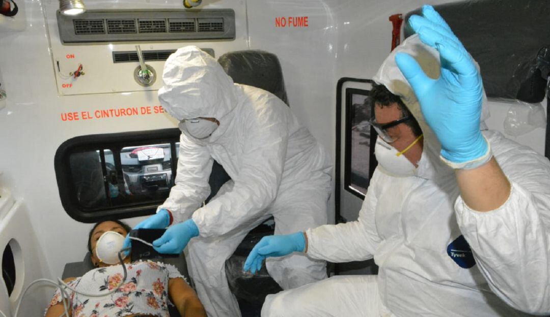 Mediante un simulacro con un "paciente posible portador del COVID19", se corroboró el manejo y la capacidad de reacción del paciente hasta esta IPS, designada por las autoridades de salud como primer referente para estos casos.