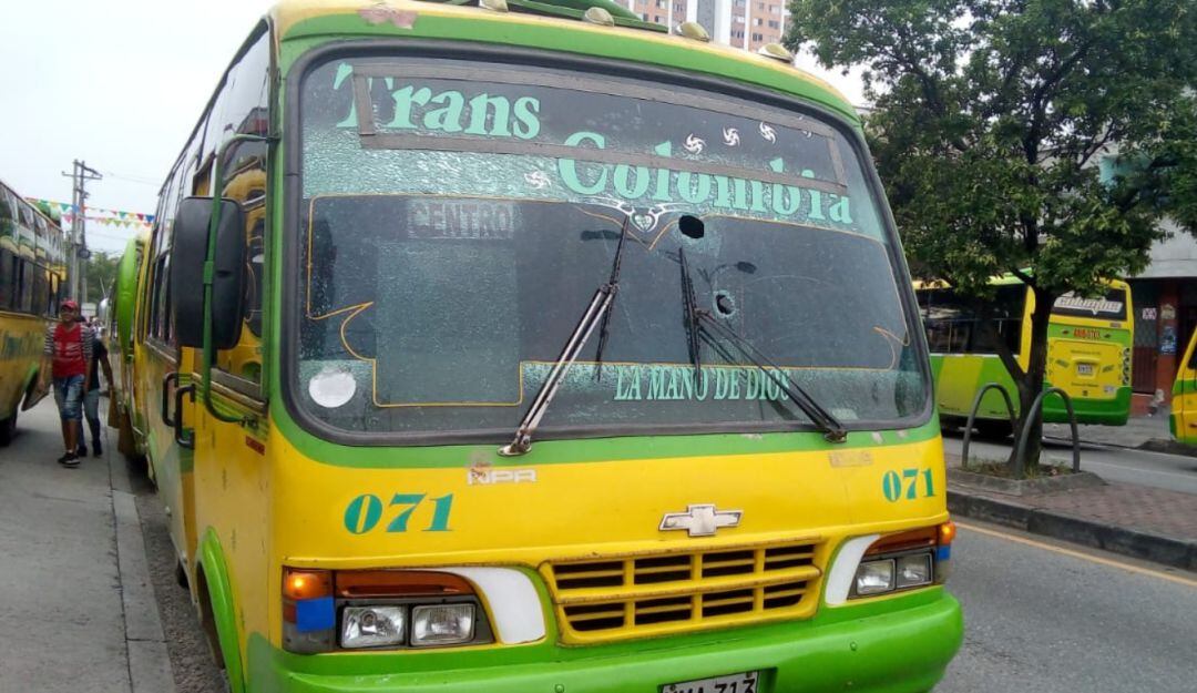 Cerca de 12 vehículos que cubren recorridos en el norte de Bucaramanga resultaron con vidrios y panorámicos rotos.