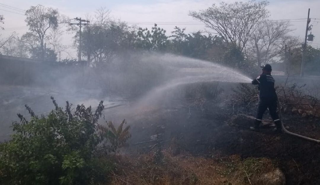 Máquinas del Cuerpo de Bomberos de Cartagena atendieron una conflagración registrada en un predio enmontado que se ubica en la parte trasera del Centro Comercial Plza Colón, entre Los Amendros y El Country.