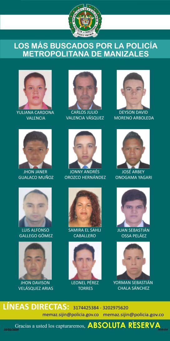 Son 12 los presuntos delincuentes que aparecen en la lista que corresponde a Manizales y Villamaría.