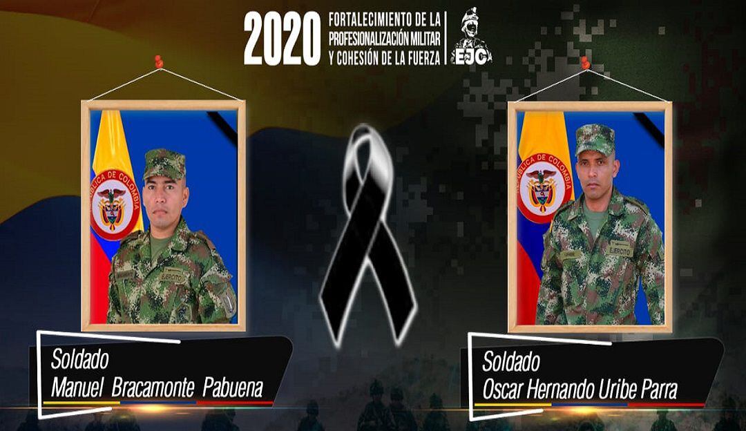 Perdieron la vida los soldados Óscar Uribe Parra, de Cunday, Tolima, y Manuel Bracamonte Pabuena, de San Marcos, Sucre.
