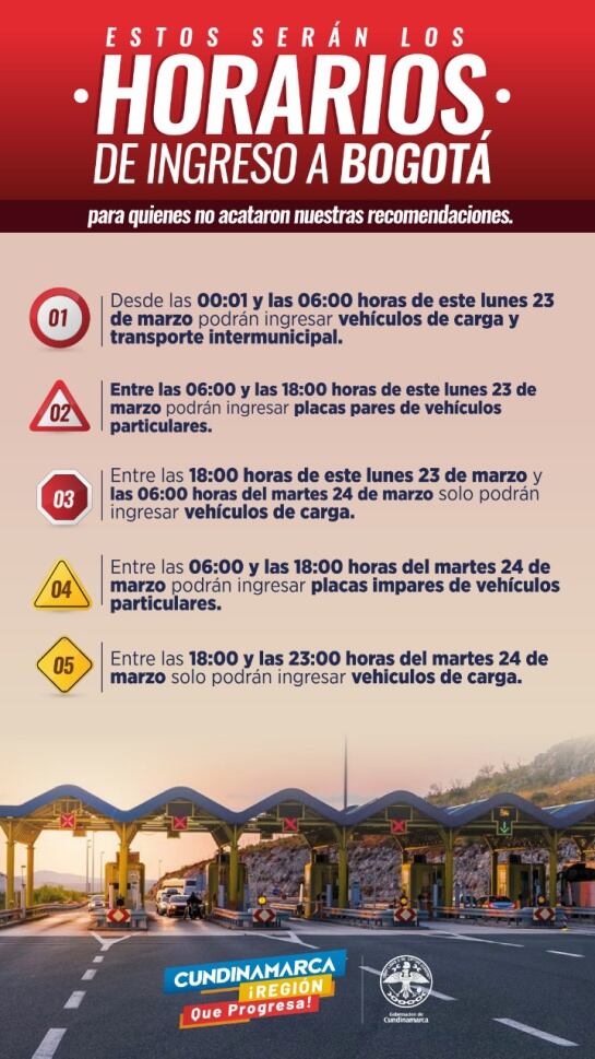 El gobernador de Cundinamarca, Nicolás García, explicó que este lunes festivo 23 de marzo podrán ingresar los vehículos de placa par, lo harán entre las 6 de la mañana y las 6 de la tarde.