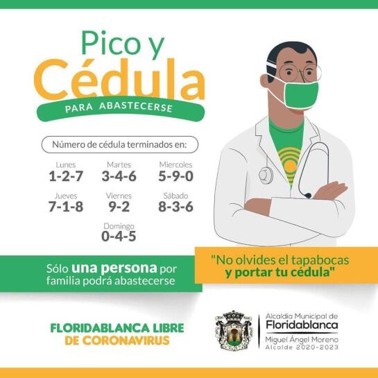 Se trata de Floridablanca y Piedecuesta, en donde se organizaron los números finales de la cédula de ciudadanía para que las personas puedan mercar y así evitar aglomeraciones en supermercados y plazas.
