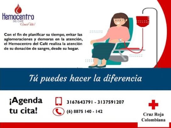 A través del banco de sangre se están agendado citas, con el fin de que un miembro de la Cruz Roja se desplace al hogar y se realice bajo todas medidas de salubridad el proceso de donación, los tipos de sangre negativos y los B y O positivos son de los más escasos.
