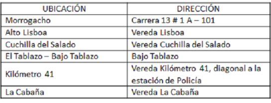 Los puntos habilitados para la zona rural son los siguientes:
