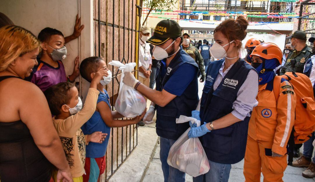 La primera dama del Distrito, Silvana Puello, hizo énfasis en “el gesto de solidaridad de empresarios y ciudadanos con estas familias que viven del día a día y que ahora no pueden salir a comprar su mercado”.
