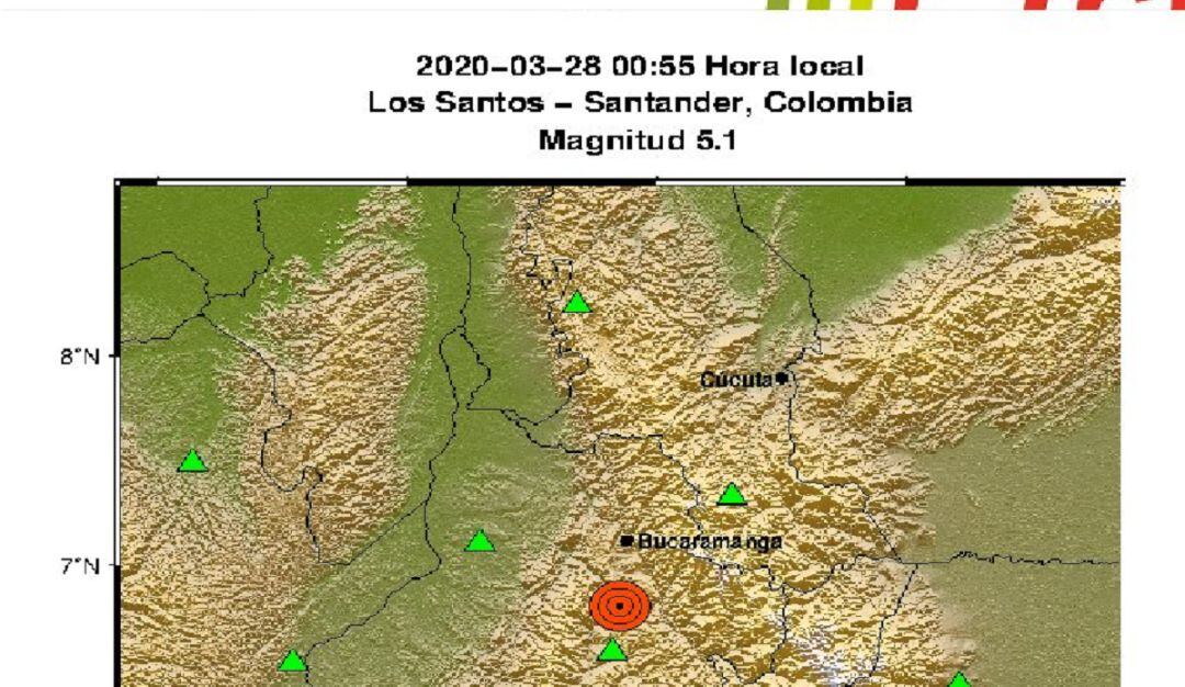 El sismo se registró a 8 kilómetros del epicentro que fue el municipio de los Santos , Santander, con una profundidad de 149 km y magnitud de 5.1.