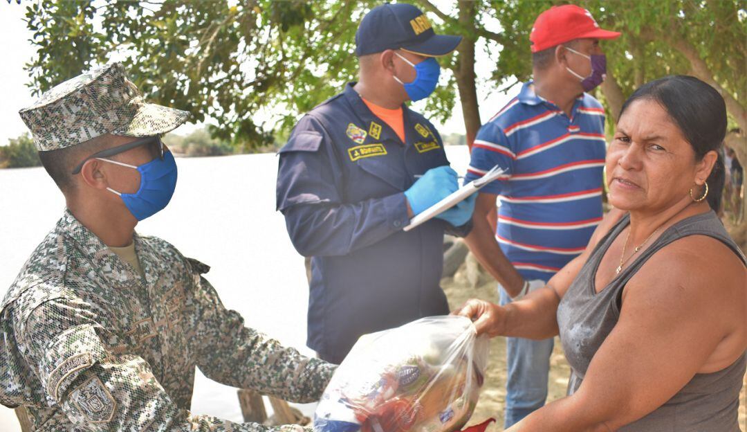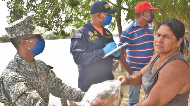 Integrando iniciativas y ayudas de los sectores públicos y privados, la Fuerza Naval del Caribe ha acompañado de manera permanente la entrega de elementos de uso primario en la canasta familiar en áreas rurales y urbanas de la ciudad.