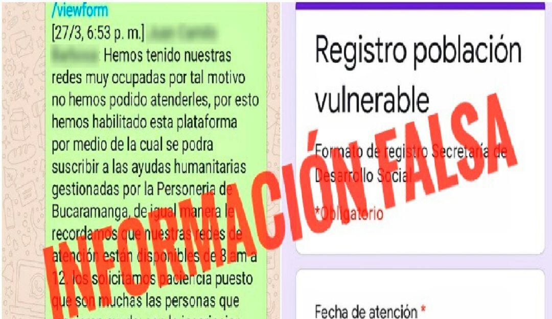 Por redes sociales aparecieron varias imágenes con un link que supuestamente la Alcaldìa de Bucaramanga daba para inscribirse y poder ser uno de los beneficiados al recibir manutención en esta cuarentena.