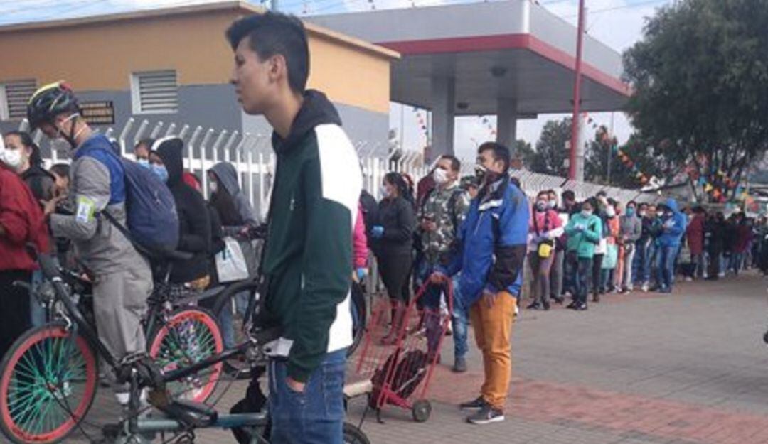 A pesar de que a cada madre se le notificó una hora diferente para acudir a reclamar los alimentos, se evidenciaron en diferentes puntos grandes filas y aglomeraciones, propicias para el contagio del Covid-19.