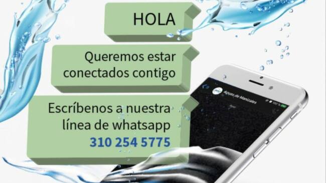 La empresa Aguas de Manizales cuenta con una nueva línea de Whatsapp a través de la cual los usuarios pueden tener asesoría e informarse sobre algunos temas específicos como puntos y medios de pago de la factura del servicio, la solicitud de reconexión de este, dudas sobre la actual emergencia, entre otros.