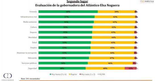 La gobernadora del Atlántico, Elsa Noguera y el alcalde de Barranquilla, Jaime Pumarejo, son los mandatarios regionales con mejor imagen del país, según reveló Cifras y Conceptos en su más reciente encuesta divulgada este viernes en 6AM Hoy por Hoy de Caracol Radio.