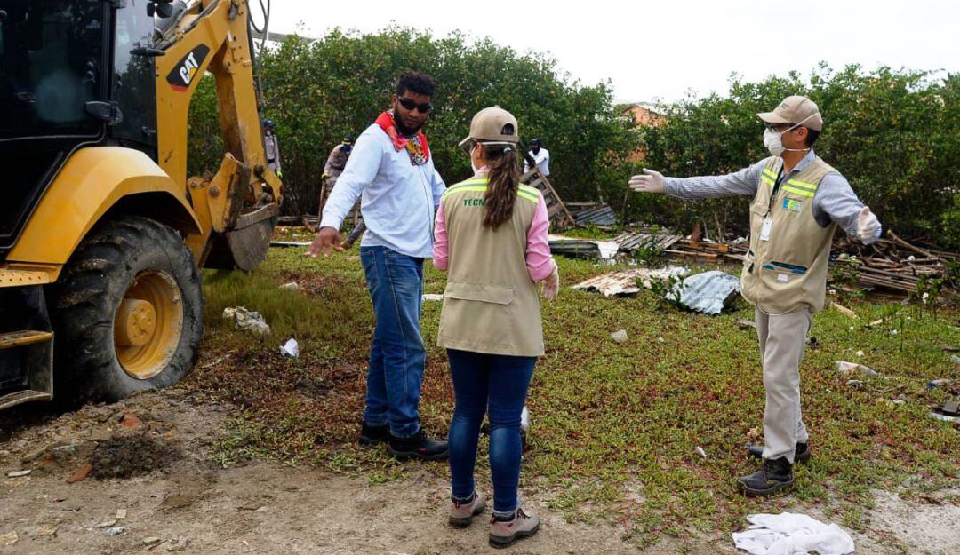 La Alcaldía de Cartagena realizó el desalojo y recuperación de un terreno de bajamar de 1.709 metros y bien de uso público que era invadido y había sido rellenado, en el barrio Marbella, aledaño al Caño Juan Angola.
