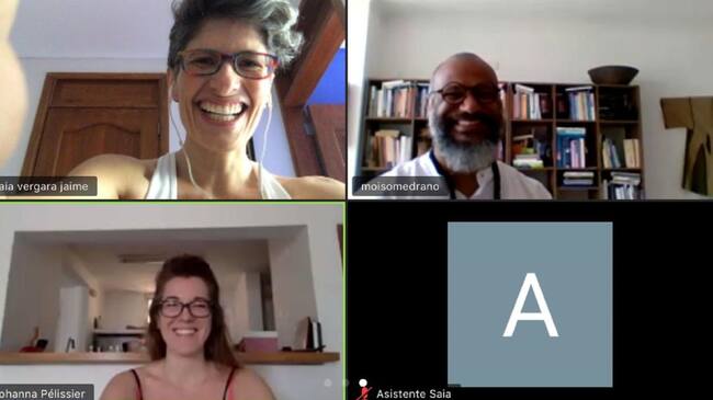 Mediante las herramientas tecnológicas que se tienen a disposición, la Directora del IPCC, Saia Vergara Jaime, y el asesor de Dirección, Moisés Medrano, tuvieron un encuentro con la Directora de la Casa Francesa, Johanna Pelissier.