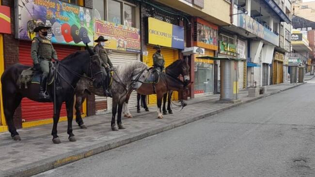 Los carabineros de la policía en patrullajes en el centro de Armenia / Cortesía Policía Quindío