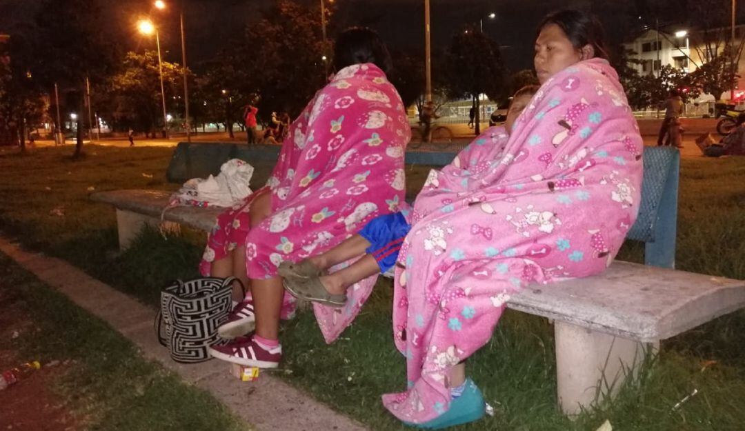 Indígenas enfermos, adultos mayores, mujeres embarazadas, algunas de ellas con bebes en brazos, tuvieron que pasar la noche en el parque soportando el hambre y el intenso frío de Bogotá.