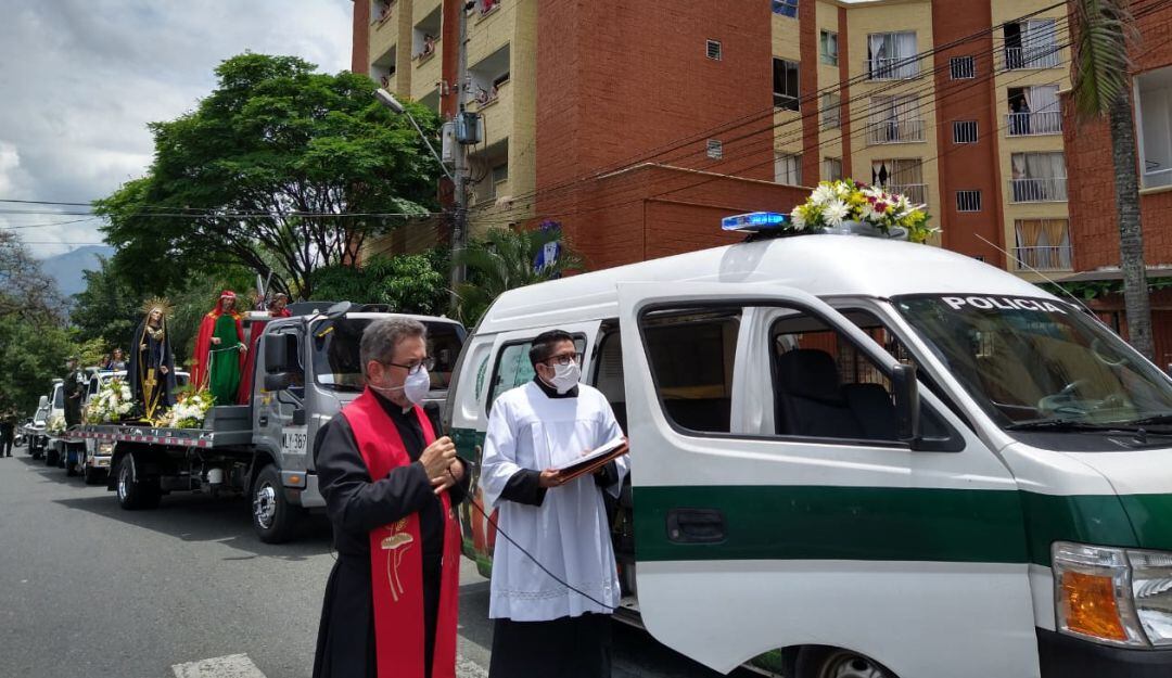 Ante esta dificultad motivada por la pandemia que trata de superarse, la policía Metropolitana subió las imágenes religiosas a los vehículos de la institución y a un sacerdote, quienes de barrio en barrio hicieron la simulación de la procesión del viernes Santo, crucifixión, muerte y resurrección de Jesús. La iniciativa fue denominada Viacrucis interbarrial queda en casa que tu policía te acompaña.
