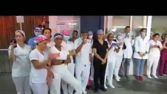 Los bomberos realizaron una caravana por las calles de Armenia y llegaron hasta el hospital San Juan de Dios para agradecer la labor médica