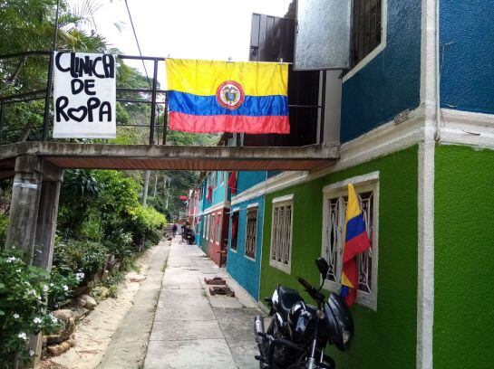 En más de 1470 viviendas del barrio Villa Rosa al norte de Bucaramanga habitantes sacaron a los balcones banderas rojas y de Colombia como símbolo de ayuda para las familias más necesitadas que no cuentan con el sustento diario en esta cuarentena.