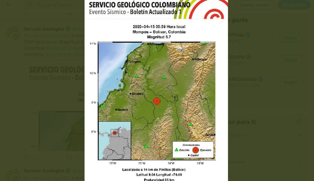 Según el Servicio Geológico Colombiano el sismo fue de magnitud 5,7