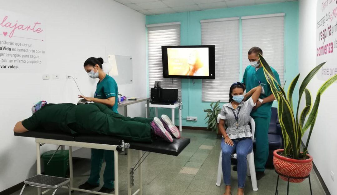 La estrategia #MeCuidoParaCuidarte, según un comunicado de la IPS Universitaria, se trata de la adecuación de algunas oficinas de la Clínica León XIII, que dejaron de ser lugares con computadores, documentos e historias clínicas, para convertirse en espacios de esparcimiento y recreación.