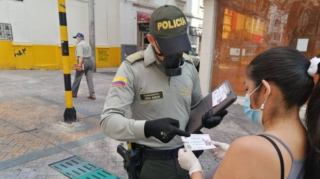 Miembros del grupo de protección de la Policía de turismo de Ibagué, realizan campañas de prevención y sensibilización para evitar la violencia en los hogares, especialmente contra la mujer durante el aislamiento obligatorio.