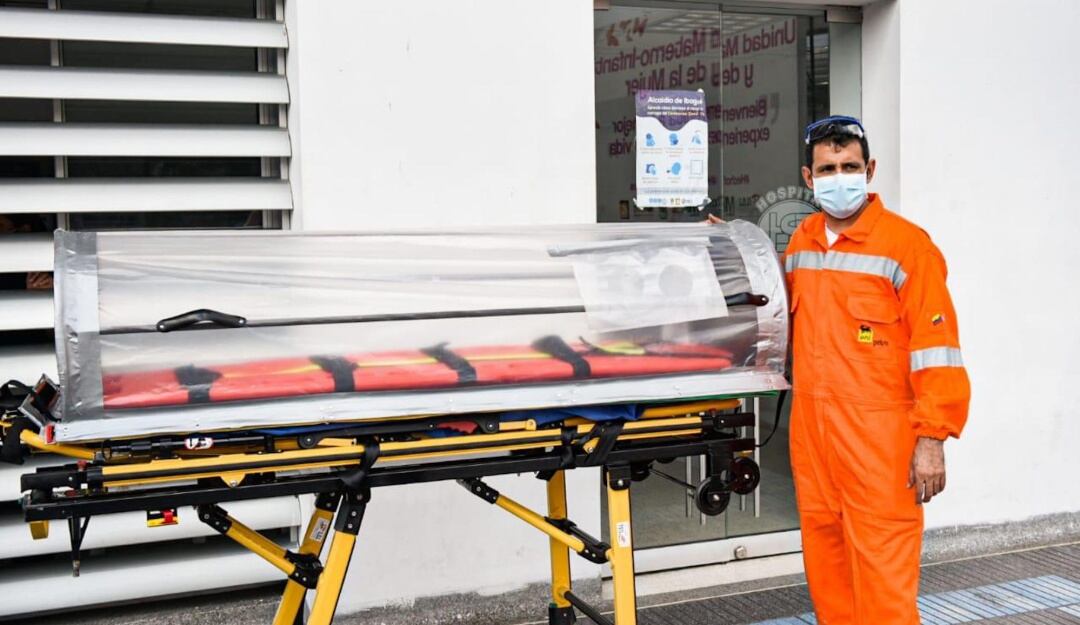 Con el fin de proteger los vehículos y el personal asistencial al momento del traslado de los pacientes con posibles síntomas de Coronavirus, el enfermero José Guillermo Vargas y el ingeniero Camilo Torres, profesionales de la Unidad de Salud de Ibagué sede San Francisco, diseñaron una cápsula especial.