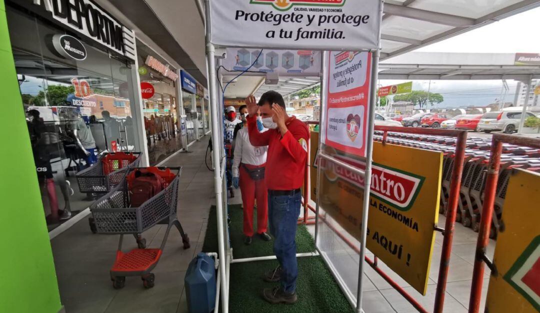 La cadena de supermercados Mercacentro que brinda sus servicios en los municipios de Ibagué y Espinal en el Tolima, instaló cabinas de desinfección en sus puntos, con el fin de evitar la propagación de los casos de coronavirus y salvaguardar la salud de sus clientes.