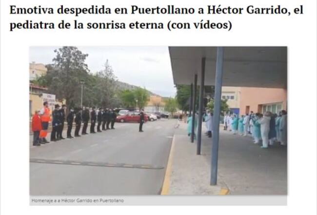 El periódico 'La Comarca de Puerto Llano' tituló la noticia: "Emotiva despedida en Puerto Llano a Héctor Garrido, el pediatra de la sonrisa eterna". El portal agregó videos que muestran el homenaje tributado al santandereano por la Policía; el Cuerpo de Bomberos y sus compañeros del hospital Santa Bárbara.