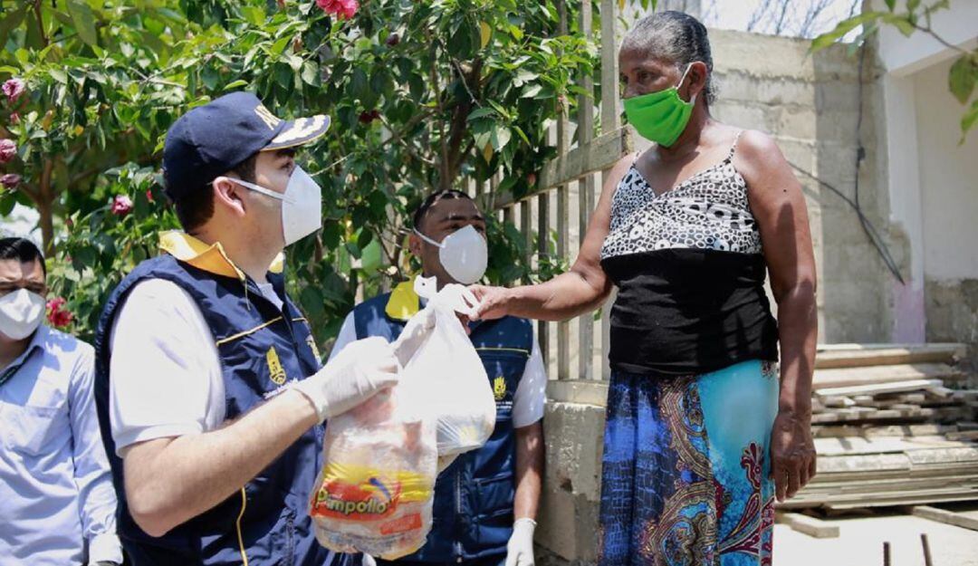 Con la entrega de 500 mercados y 2.000 unidades de pollos para familias del barrio Olaya Herrera y los corregimientos de Bayunca, Pontezuela y Arroyo de Piedra, el gobernador de Bolívar, Vicente Blel Scaff, atendió a estas comunidades. Según el Gobierno Departamental, el propósito es mantener viva la esperanza en medio de la pandemia.