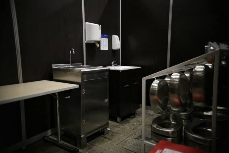 Este es uno de los lavamanos del personal médico y otros utensilios para los pacientes que no se puedan mover.
