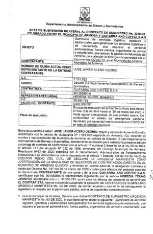 Caracol Radio conoció que en las últimas horas la alcaldía de Armenia decidió suspender el contrato de alimentos por 300 millones de pesos ante la solicitud de la Procuraduría.