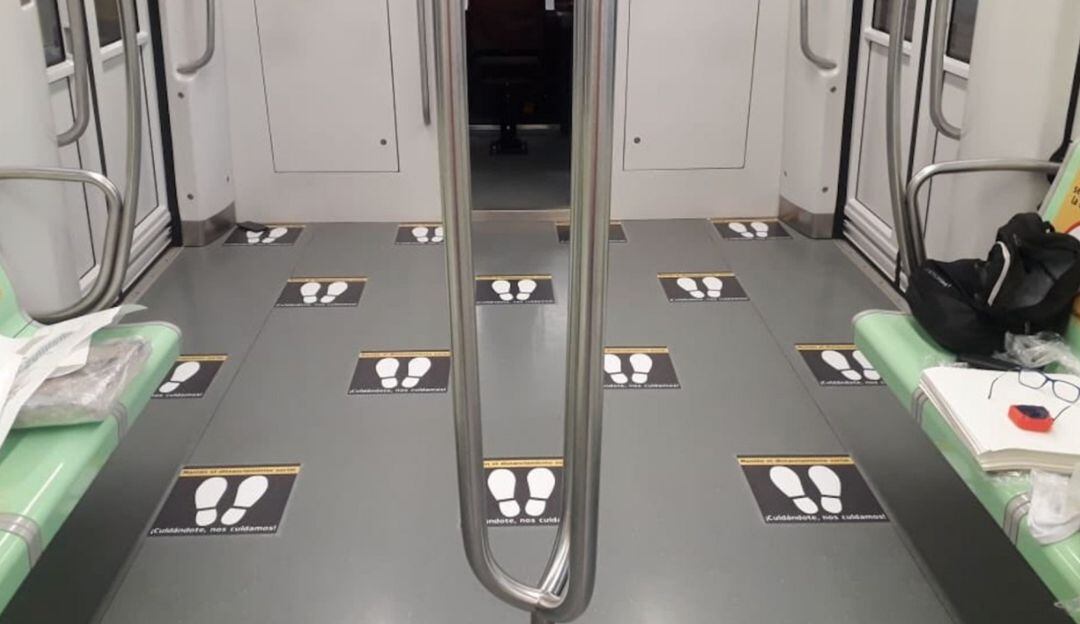 Para controlar que la ocupación sea del 35%, los trenes tendrán calcomanias que delimitan el espacio entre los usuarios