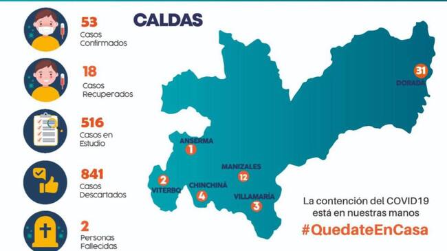 A la fecha Caldas tiene 18 personas recuperadas y 841 muestras de casos descartados.