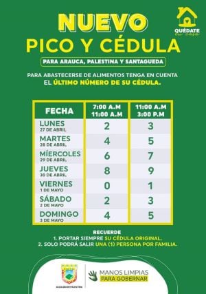Cada día se permitirá la movilidad de las personas de acuerdo con 2 dígitos de las cédulas. De 7 a 11 de la mañana saldrán quienes su documento termine en un número determinado y de 11 a 3 de la tarde quienes tengan el otro número.