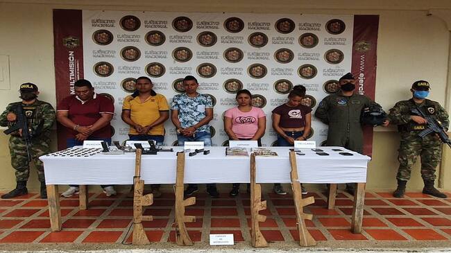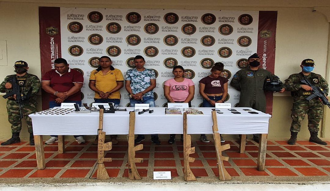 En ese lugar, los miembros de la Fuerza Pública sorprendieron a José Peña Santana, alias 'Rubén'; Alexánder Romero Tano, alias 'Ochenta' o 'El Viejo'; Yáder Herazo Tano, alias 'El Chino'; Keyla Andrea Contreras Ardila, alias 'La Flaca', supuesta instructora de políticas internas del grupo criminal, y Yuléinis Isabel Contreras Calle, alias 'La Negra'.