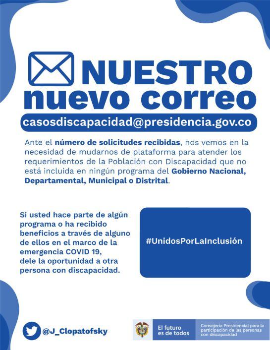 Correo para solicitudes de la población con discapacidad no atendida / Consejería para la Participación de Personas con Discapacidad