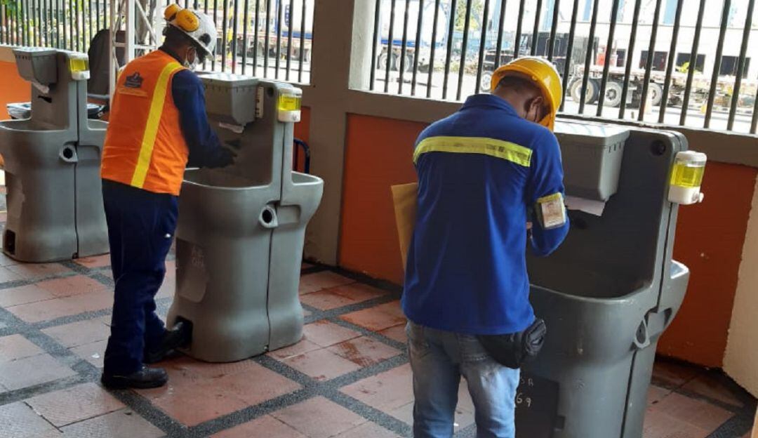 En los últimos días se han instalado lavamanos en diferentes puntos de las terminales, el proyecto contempla un total de 36 lavamanos, 14 en Sociedad Portuaria de Cartagena y 22 en Contecar, distribuidos en puertas de acceso, bodegas, patios, plataforma de aforos y almacén, esto, en el entendido de que el lavado frecuente de manos es una de las medidas más eficaces para protegerse de la COVID-19.