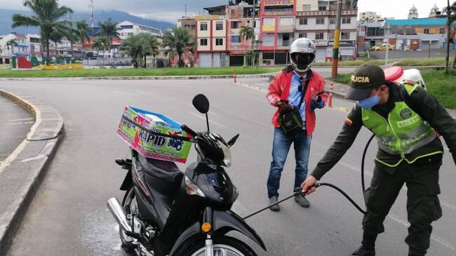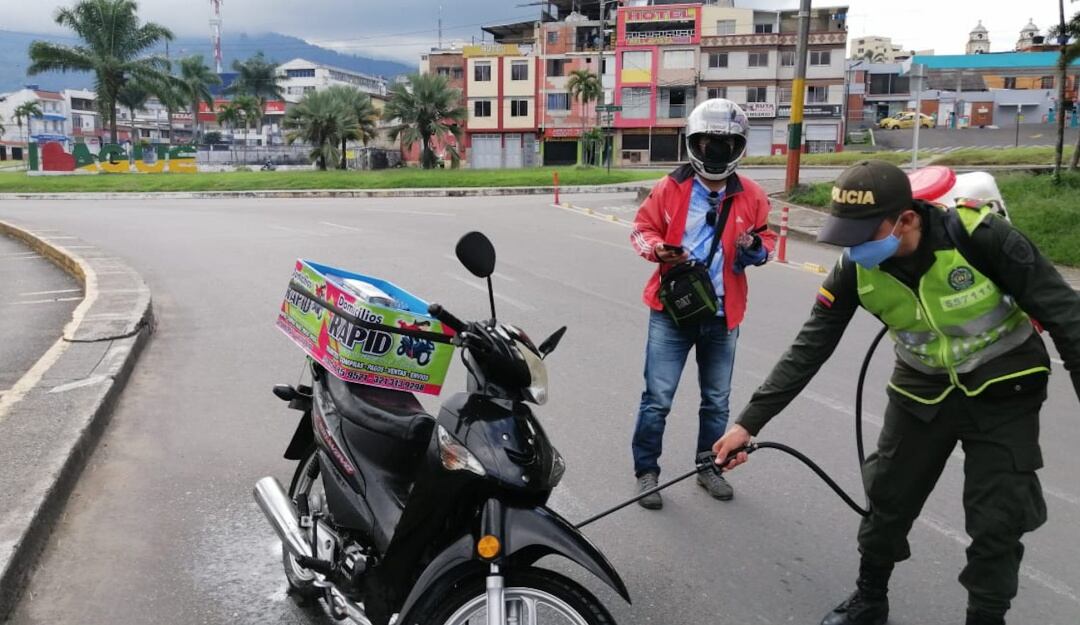 Avanzan jornadas de desinfección en Ibagué / Desinfección de motos en Ibagué (Cortesía Policía Metropolitana Ibagué)