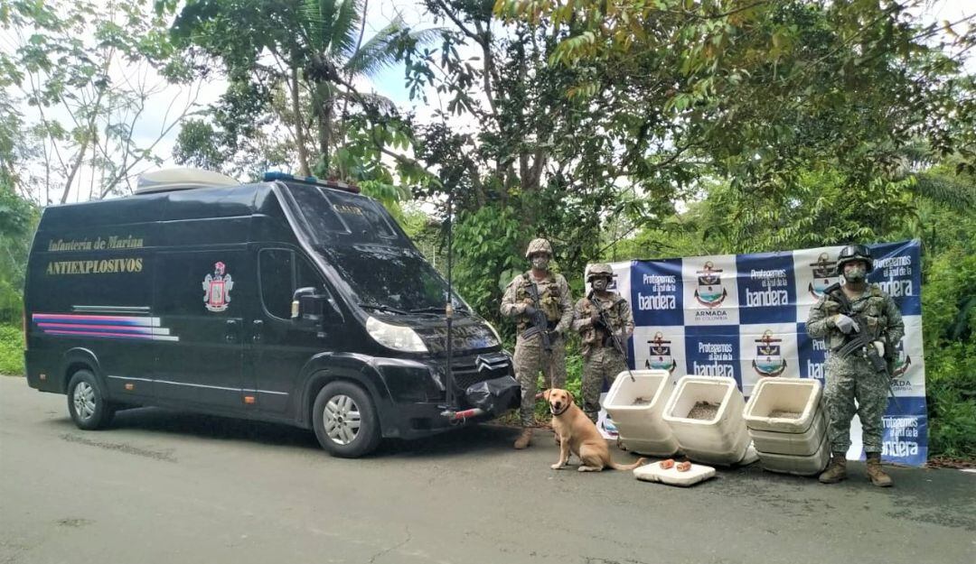 Al parecer, al percatarse de la presencia del Ejército y la Armanda Nacional, quienes transportaban los explosivos los dejaron abandonados en una carretera que conduce al aeropuerto de Buenaventura, allí los uniformados se encontraron con tres cavas llenas de pescado para cubrir el explosivo que se utilizada con frecuencia en actividades de minería ilegal y atentados terroristas.