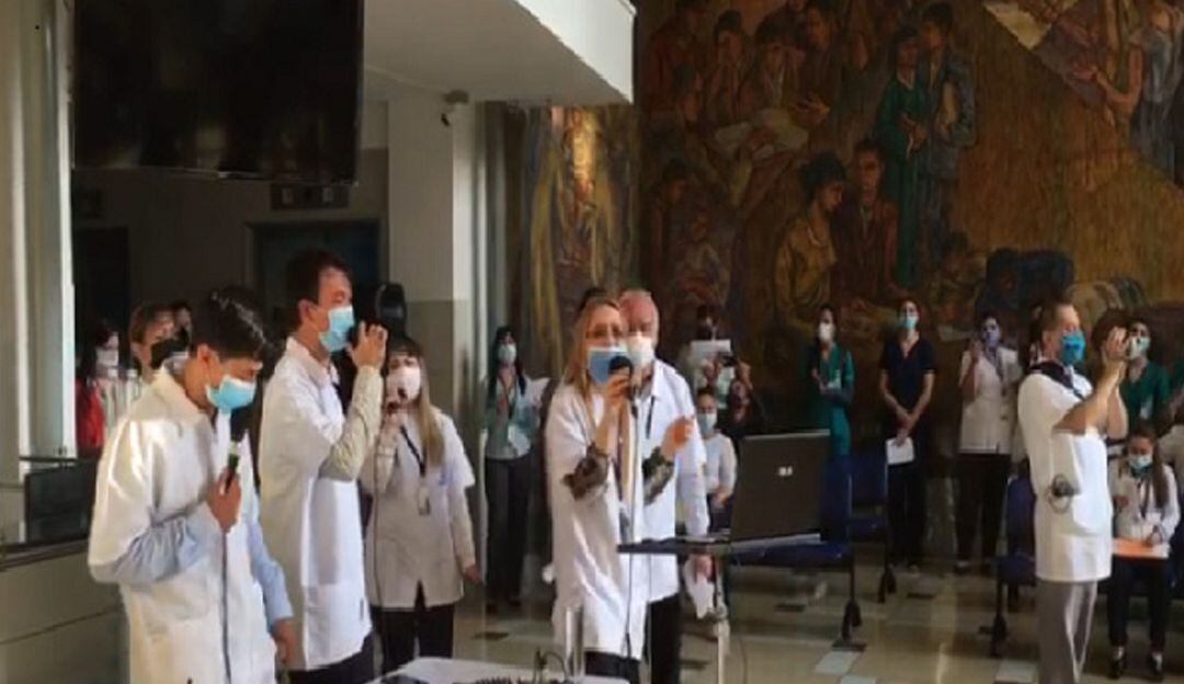 “Estamos todos los días pensando en el personal y en sus familiares, para darles todo el apoyo que necesiten. A través de estas canciones y con la fuerza del amor, vamos a vencer”, comentó la directora a los empleados de la clínica.